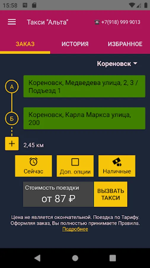 Alta is a taxi ordering service in the city of Korenovsk and the villages of Vyselka and Vasyurinskaya in the Krasnodar Territory. The priorities of the Alta order service are the comfort and safety of transportation. Only the best carriers.