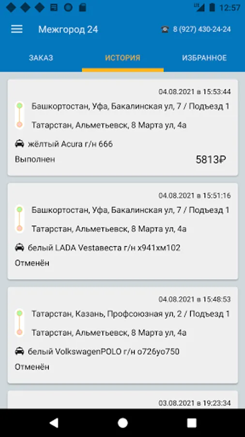 "Mezhgorod24" - services for ordering intercity trips from dozens of cities in Russia.