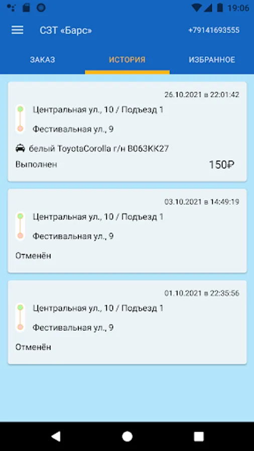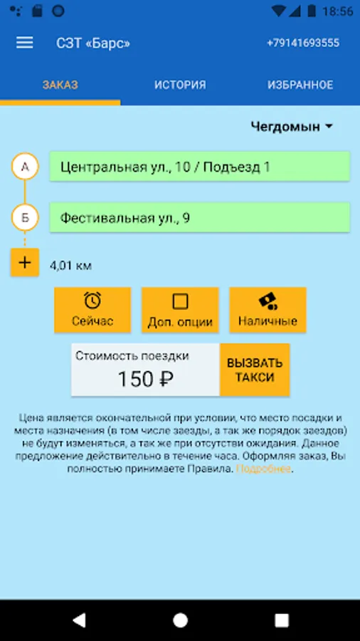 "Bars" is a taxi ordering service in the city of Chegdomyn (Khabarovsk Territory). The priorities of the Bars service are comfort and safety of transportation.