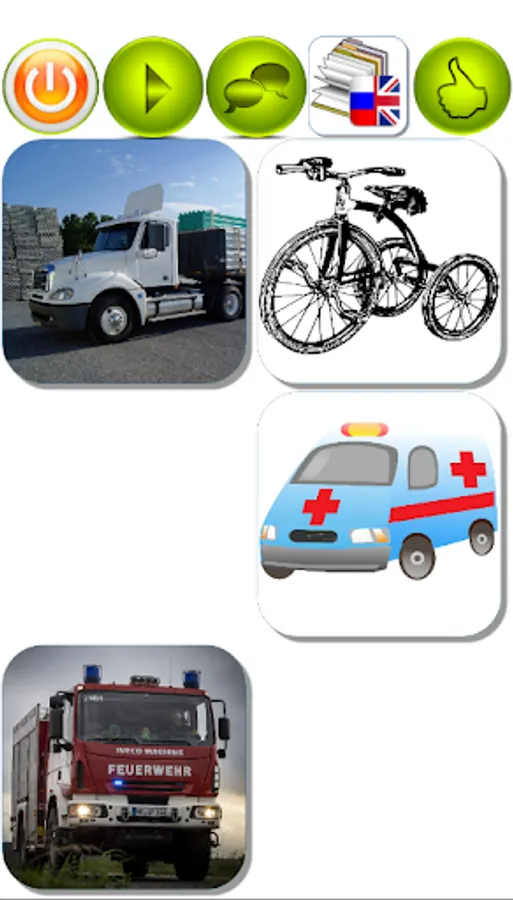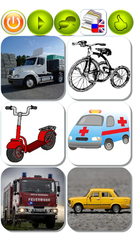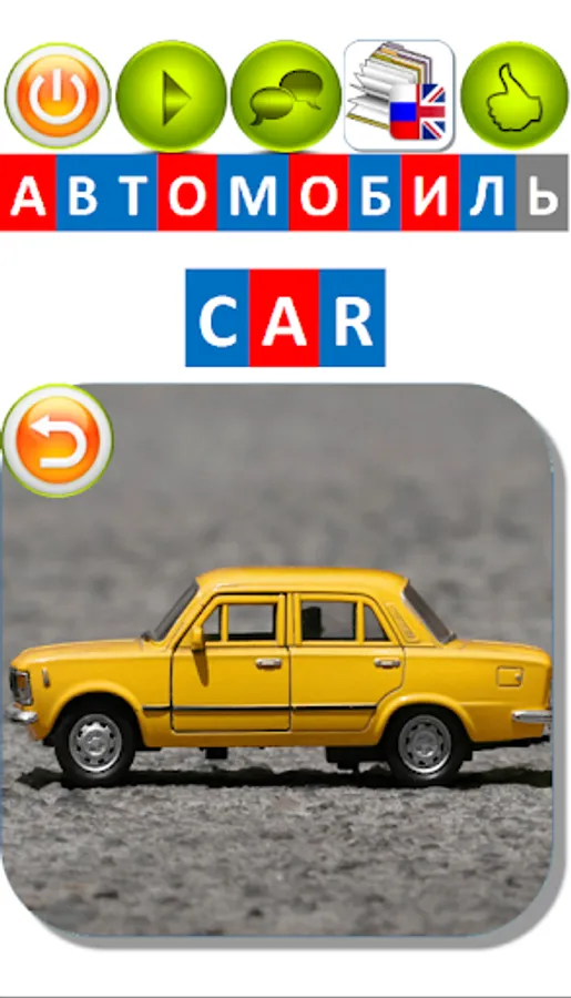 Cards are displayed on the screen, lets slip the name of the object depicted on a card in Russian and English.