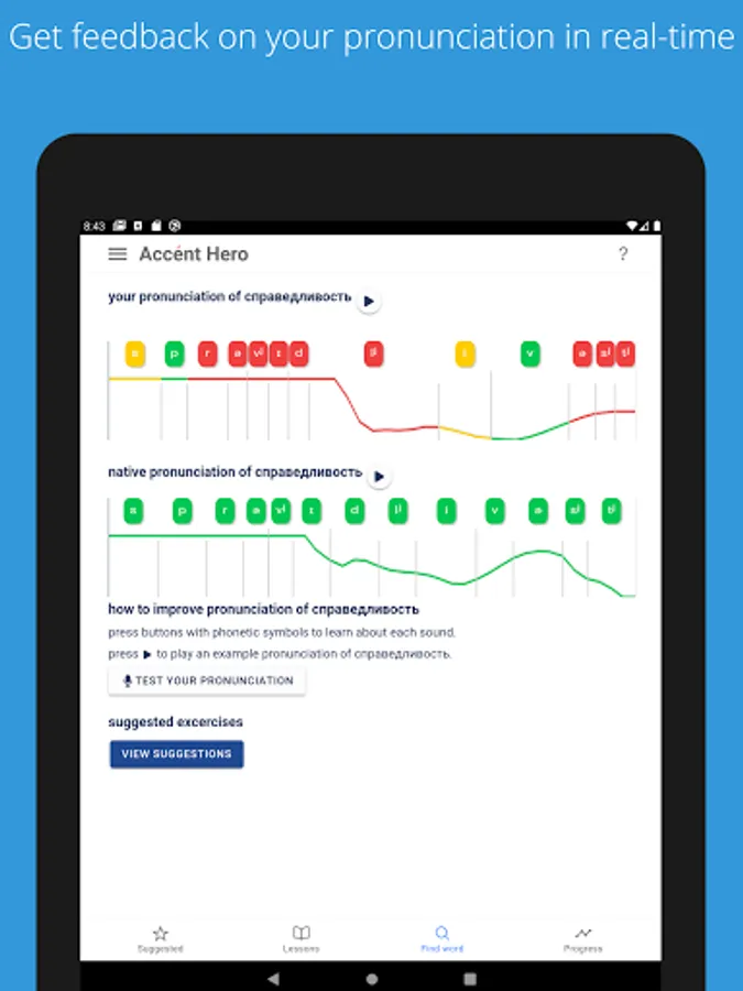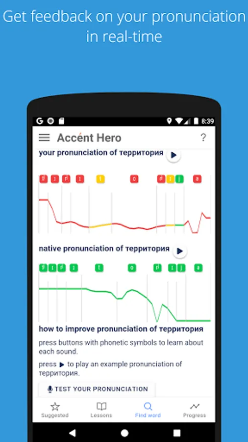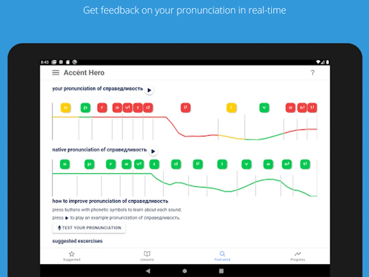 2. No environment provides enough feedback to master an accent. So, the app delivers real-time feedback for every word that you pronounce.