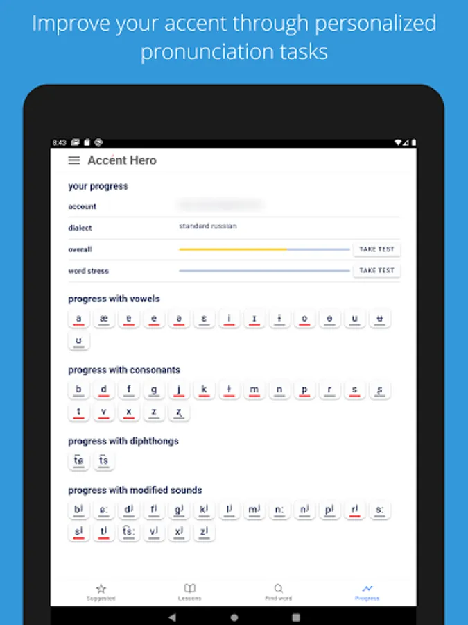 Next, Accent Hero organizes exercises into a personalized pronunciation course that: