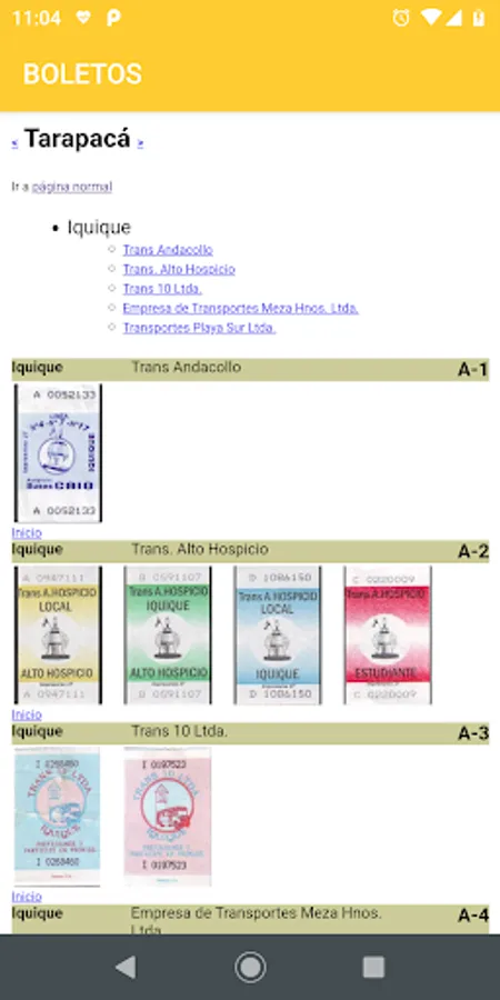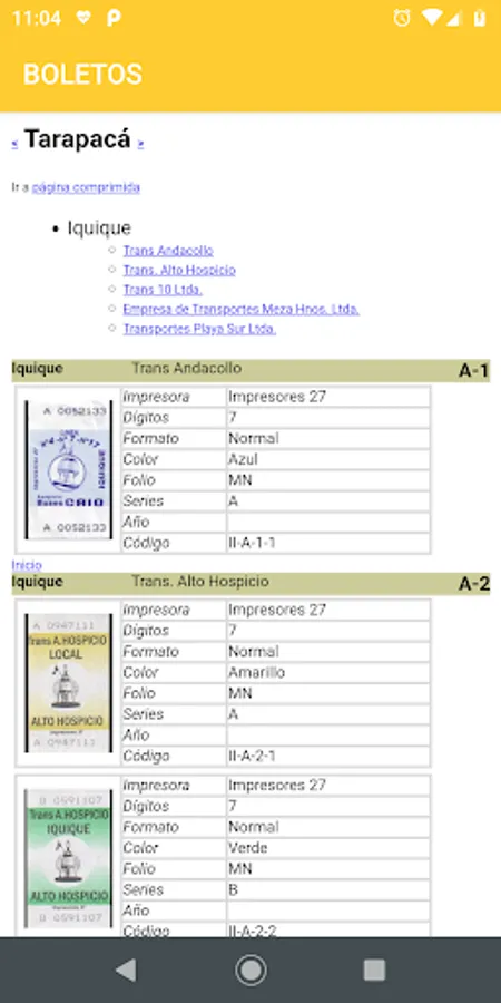 This application includes the collection of bus ticket catalogs from Chile, created by Juan Alejandro Carreño and Russell Beckett.
