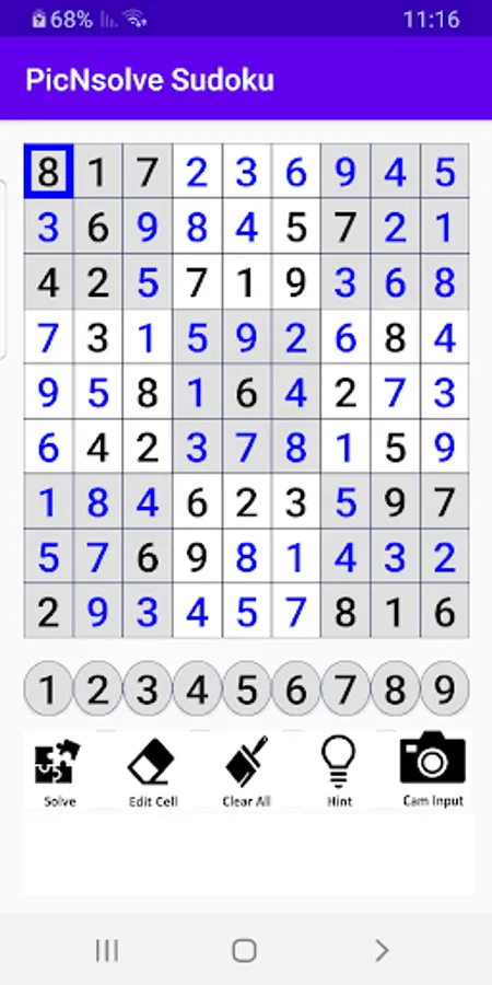 - Use app options: Hint and Edit Cell to solve the puzzle