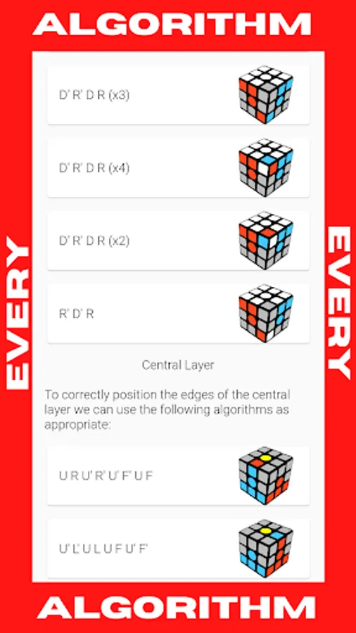 This 3x3 algorithms Magic cube solver will be your best ally in your speedsolving trip to always have at your fingertips the RubiX Cube Algorithms and information of this method.