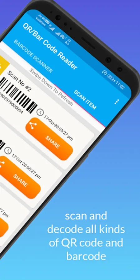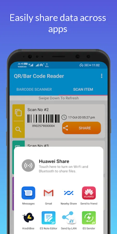 - Share your QR codes via social networking(WhatsApp, Facebook,Twitter, Gmail, WeChat, Line, E-mail, SMS) to your friends.