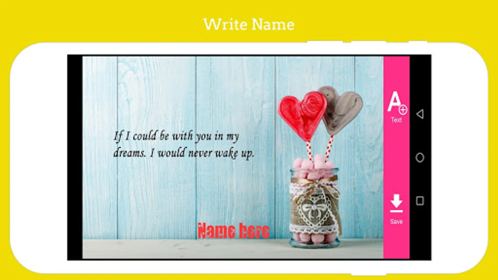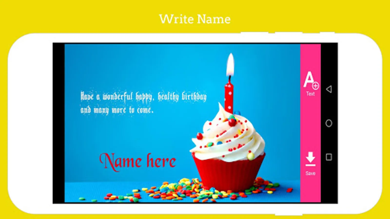 -Our App provide opportunity to create greeting card online for wishes like HAPPY BIRTHDAY, LOVE, i MISS YOU, DAY WISHES etc. You can write your own name and text on greeting card photo. You can style your name in many different styles provided in the app. You can write your name on BRACELETS, KEY CHAINS, LOCKETS, CAKES and many more.