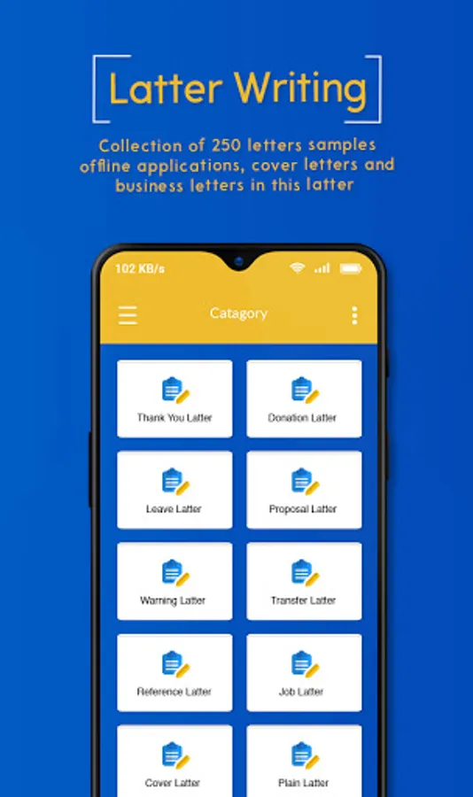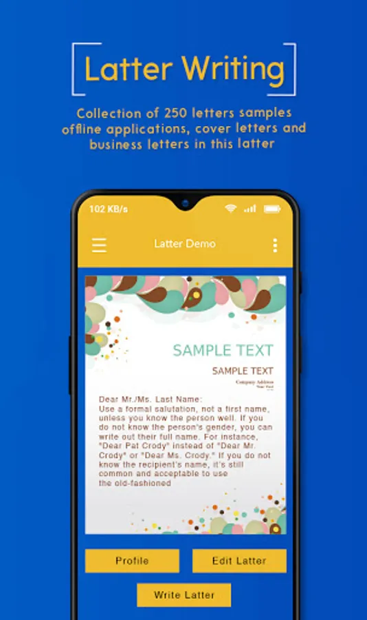This English Letter Writing for students is an essential app for all students, employees, and business doing persons because this letter pad maker has all the formal letters or business proposal letters and personal letters that you want to write in this letter typing app.