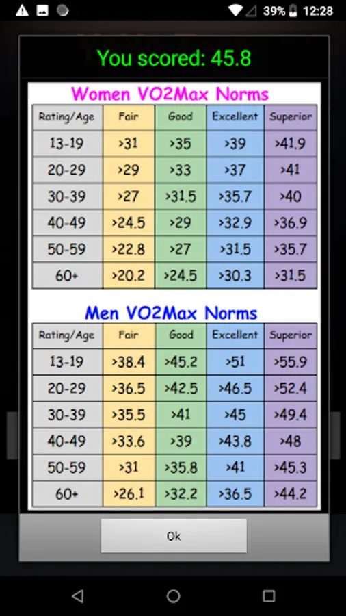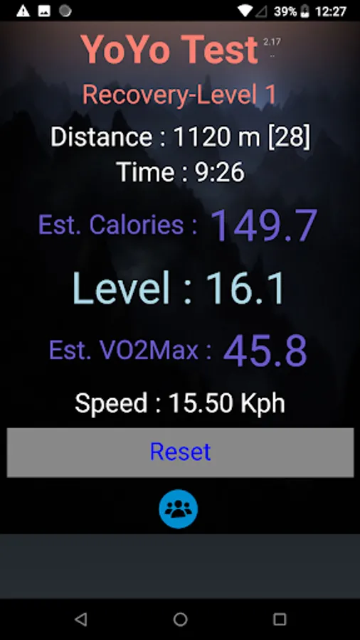 Note: A rough estimate of VO2Max will be provided for Recovery Level 1 only, provided at least 1000m (level 15.6) has been run.