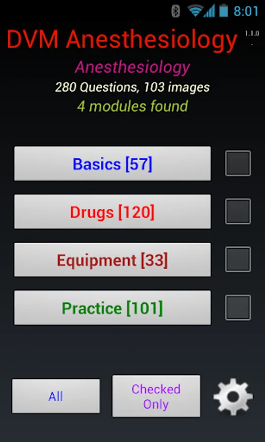 Questions divided into 4 modules: