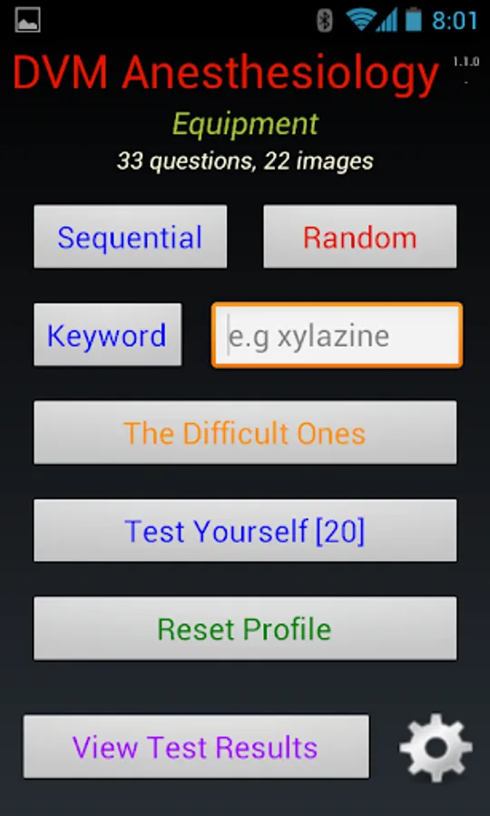 Keyword mode. Presents questions that match a keyword (within the question text)