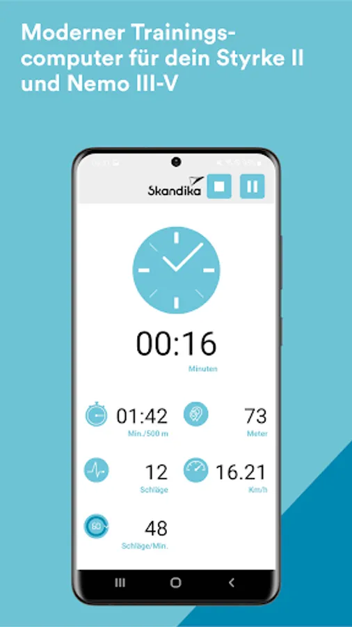 Achieve your training goals and maintain a healthy and active lifestyle. Connect your Styrke II, Nemo III, Nemo IV or Nemo V water rowing machine to the free Skandika Training Data app. When you start the free training you will see all relevant training data live on your smartphone or tablet, turning it into a training computer.