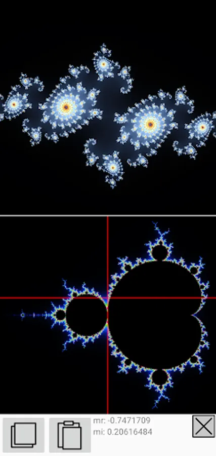 See and explore the fractal Mandelbrot and Julia sets, share or save in your phone the images from the screen.