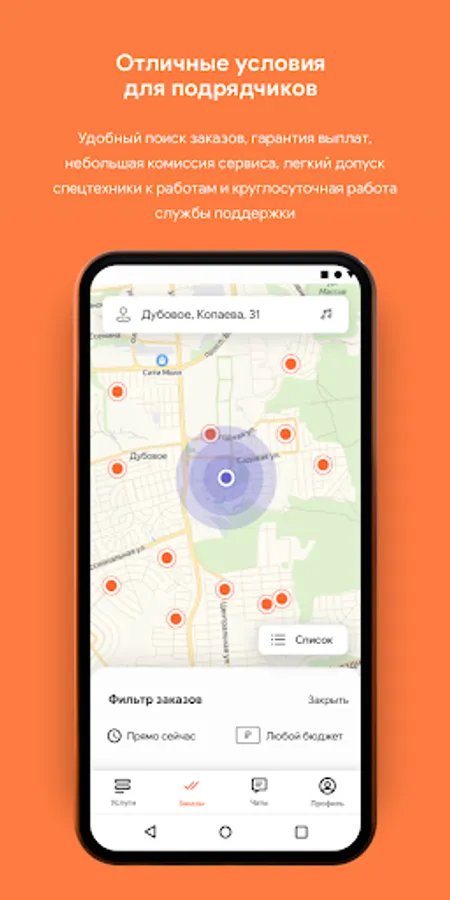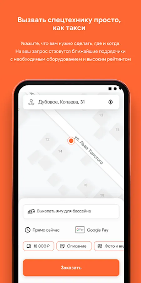 We connect people who need construction equipment with those who have it. No dispatchers. No calls. All you need is to install the application and click "Order"