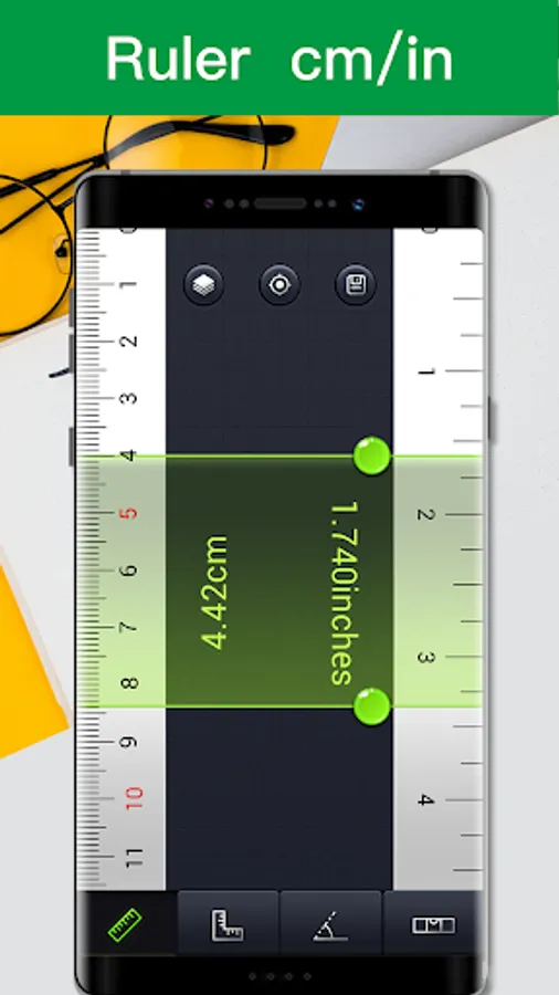 This is a virtual ruler that is identical to actual rulers. If you need a ruler and there is nowhere to find one, download this app and turn your mobile phone into a ruler, bubble level and angle determiner. Ruler app includes the following functions: unit converter: centimeters to inches, online ruler, measurement tool and gradient meter .
