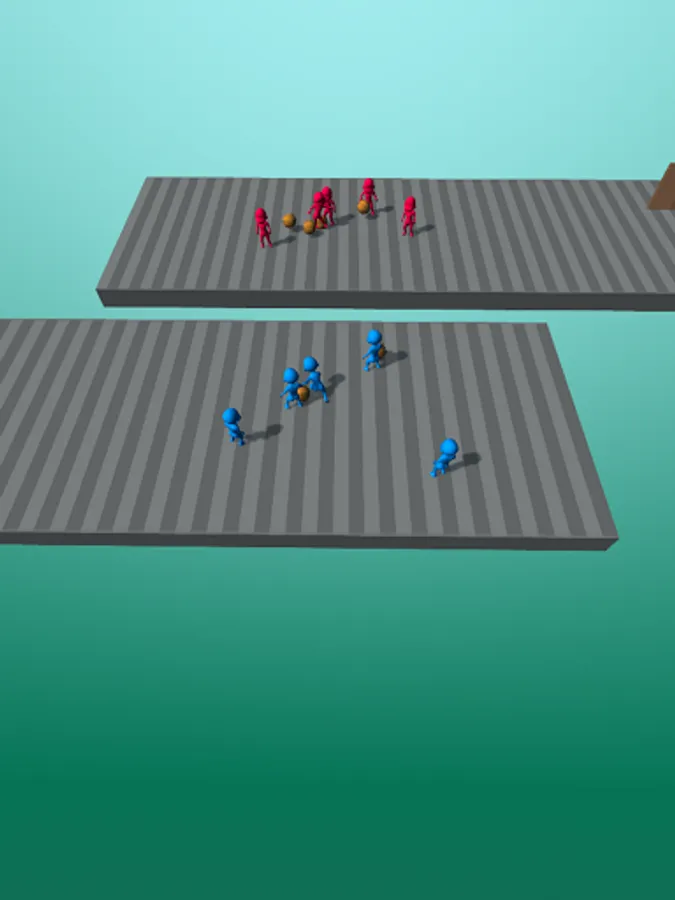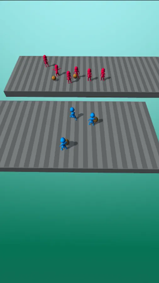 Run forward, collecting new team members and balls for them - your goal is to collect the strongest team and destroy the opposing team!