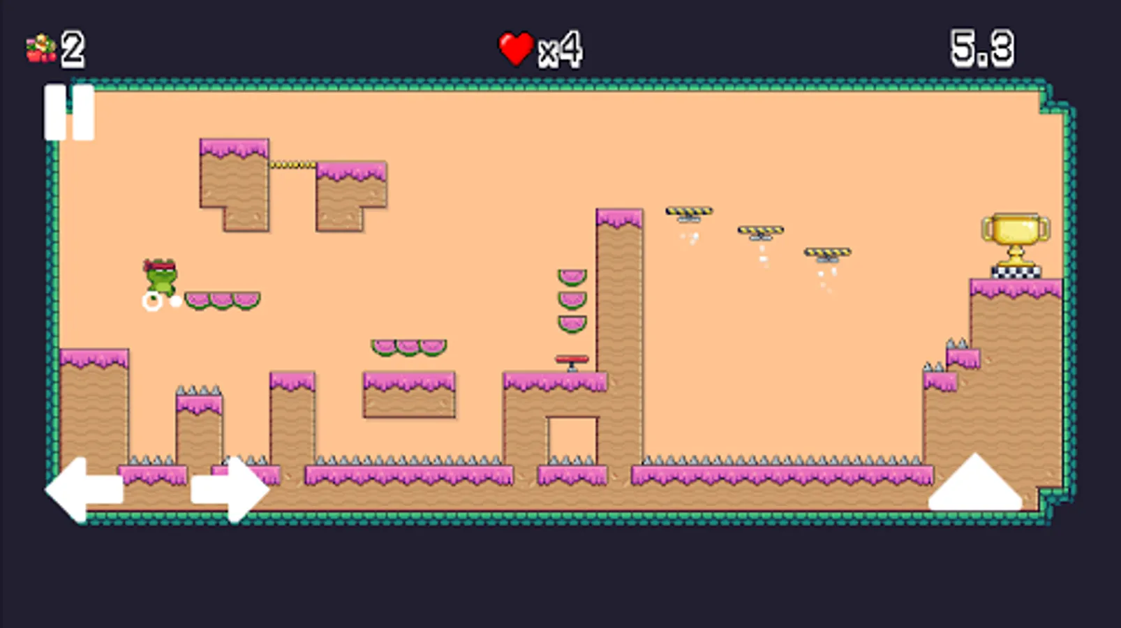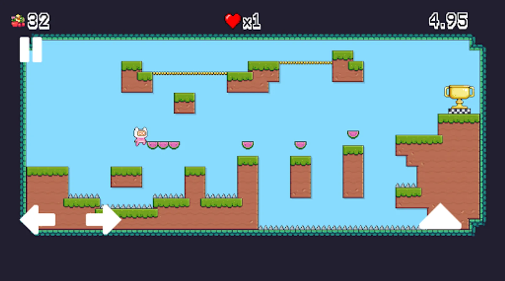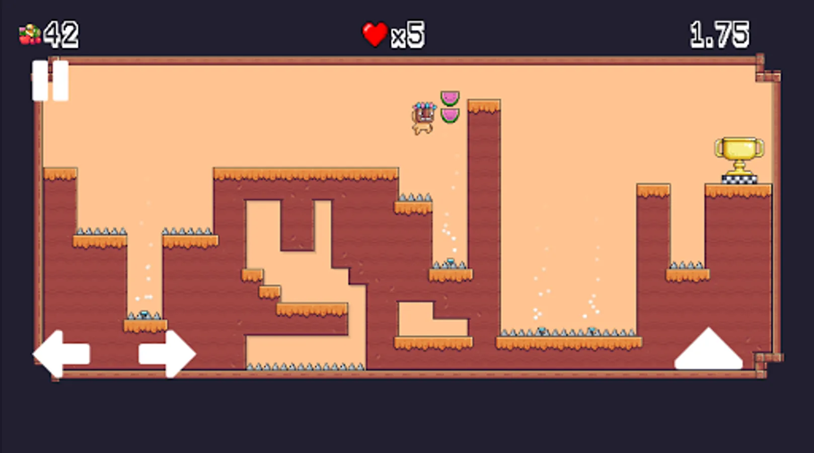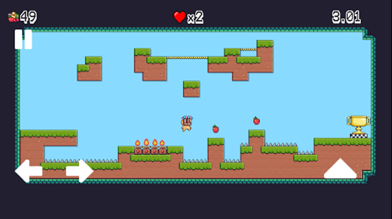- Collect fruits and unlock three new characters or buy extra lives.