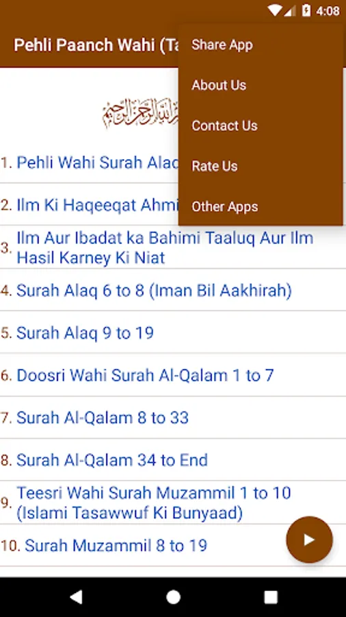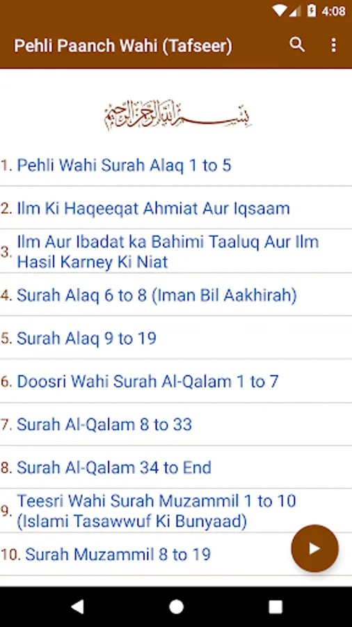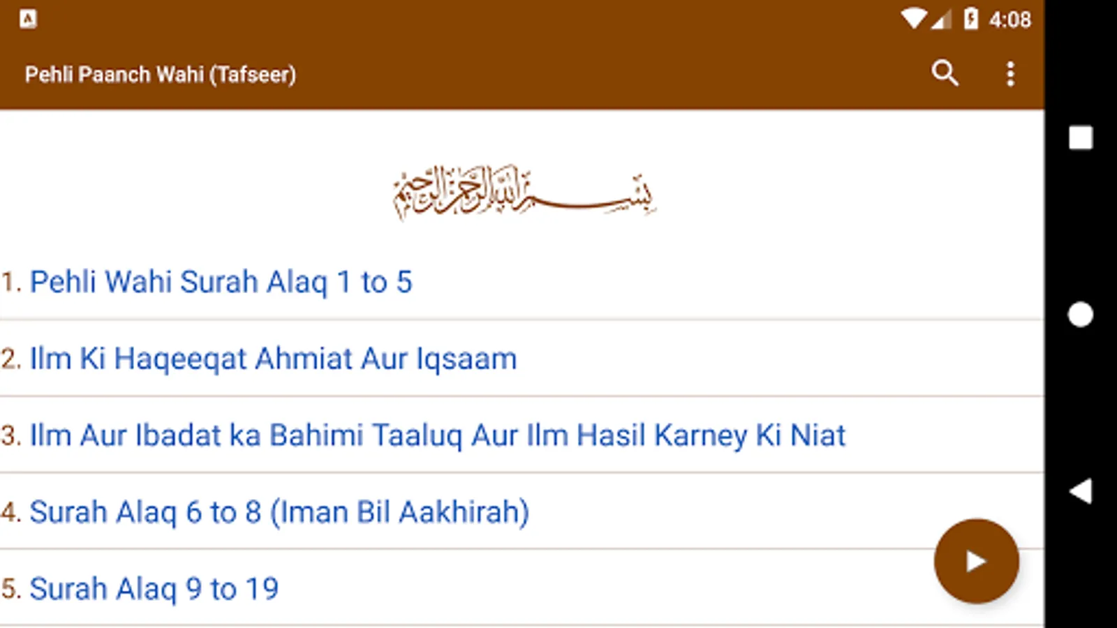 This Android Application provides lectures given by Dr. Israr Ahmed on Pehli Paanch Wahi (Tafseer).