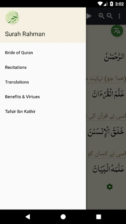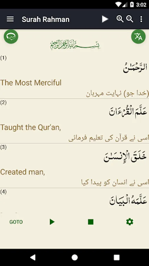 Includes Lectures in multiple languages on Tafseer on Surah Rahman