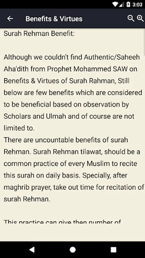 Change of Font size for the better comprehension and visibility of verses as per user choice and eyesight suits.