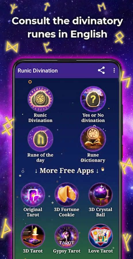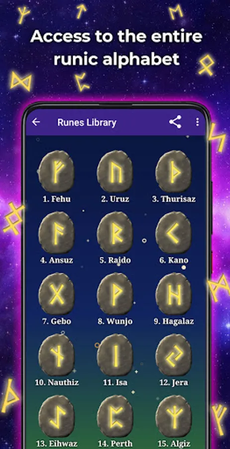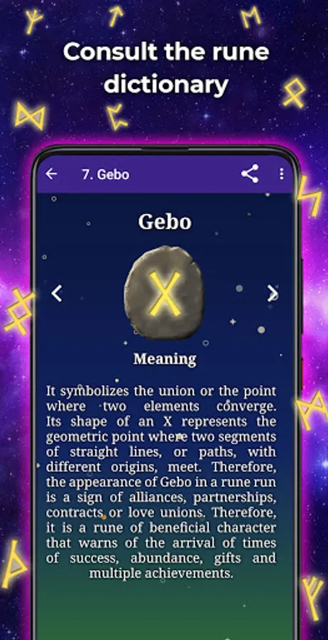 4. Access the runic dictionary: That's right, for convenience we have provided access to the meaning of all Viking and Celtic runes. For those who are curious or prefer to make consultations with real runes and consult the detailed meaning in an app.