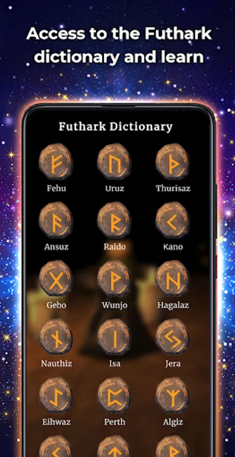 - Discover the meaning of all runes thanks to the Ancient Futhark Dictionary, with the entire alphabet of Norse runes.