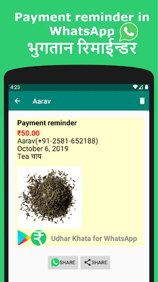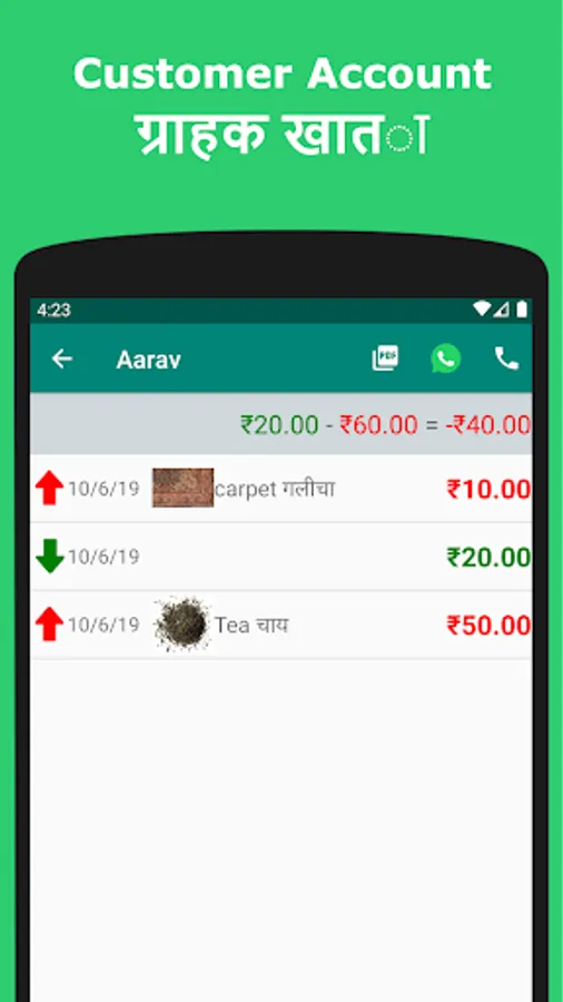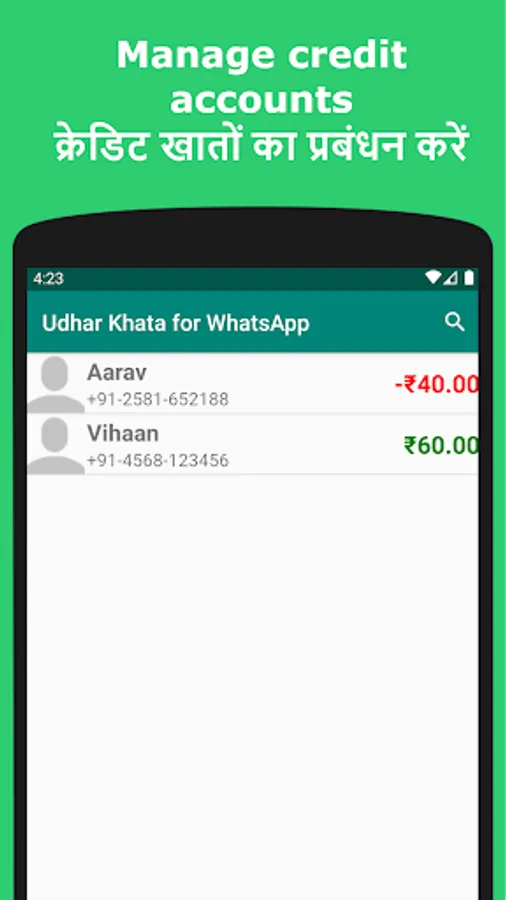 Record and track credit (Jama) and debit (Udhar) transactions for your customers.