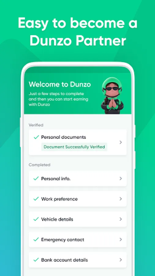 Dunzo is a 24x7 delivery app that allows customers to get anything delivered to their doorstep. As a Dunzo Delivery Partner, you get to have flexible work timing of your choice, earn incentives and enjoy benefits as you go.