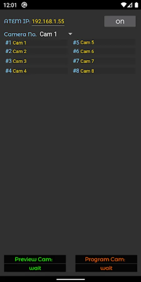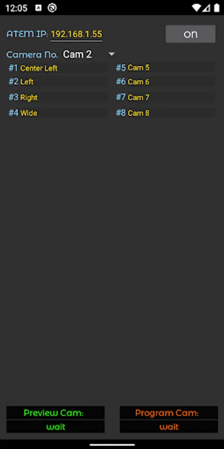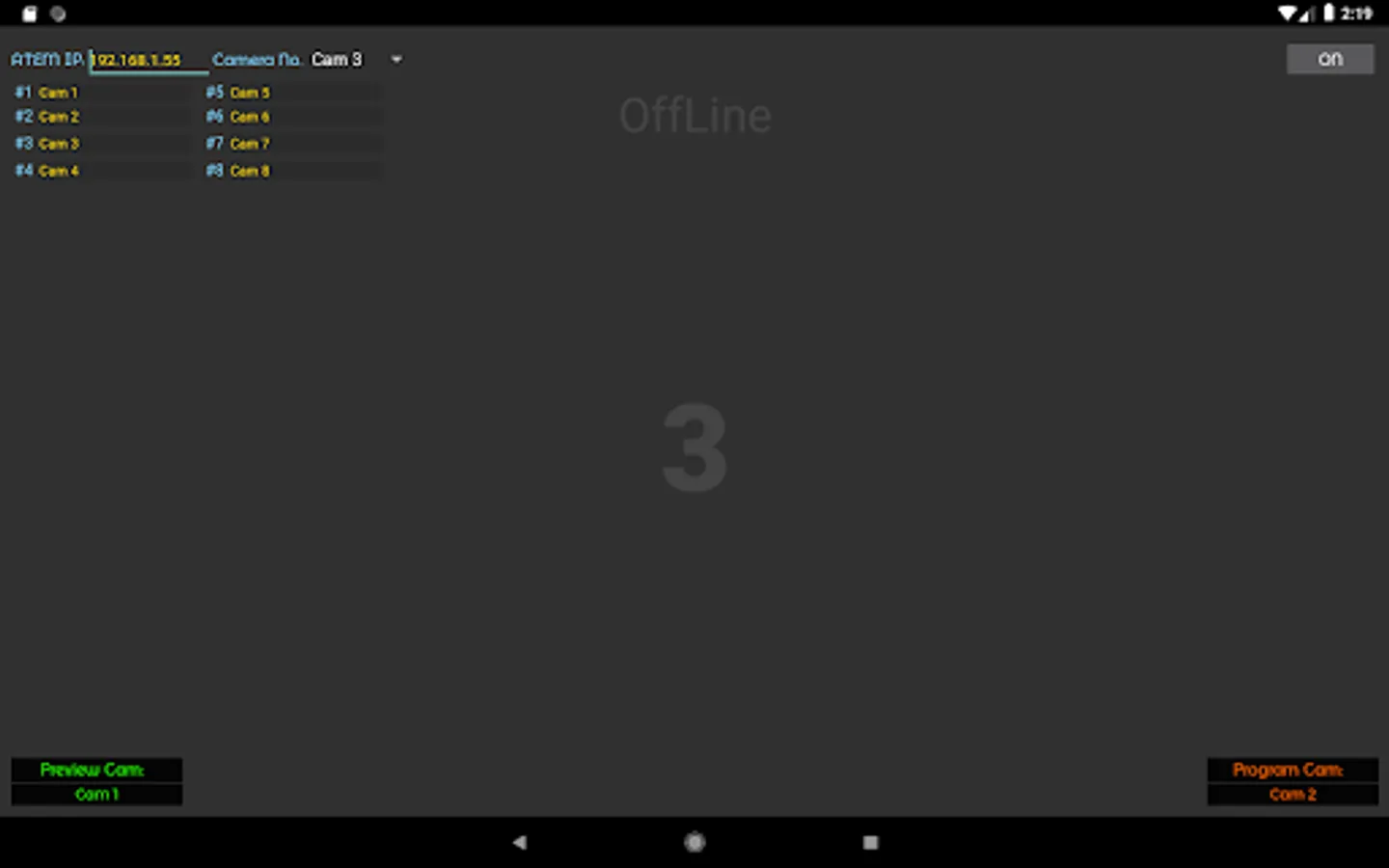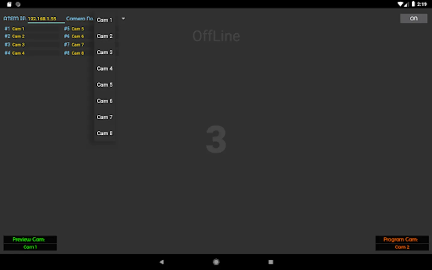 This is an application to view the status of the camera. You can select a camera and monitor its status (offline, preview, program).