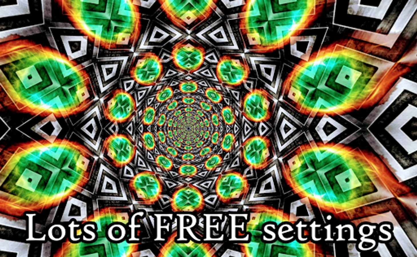 You will experience a thrilling 3D ride through tunnels filled with shining plasma clouds on your way to meet with extraterrestrials. The app looks totally different in the music visualizer, where the tunnels change colors with the music.