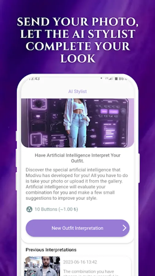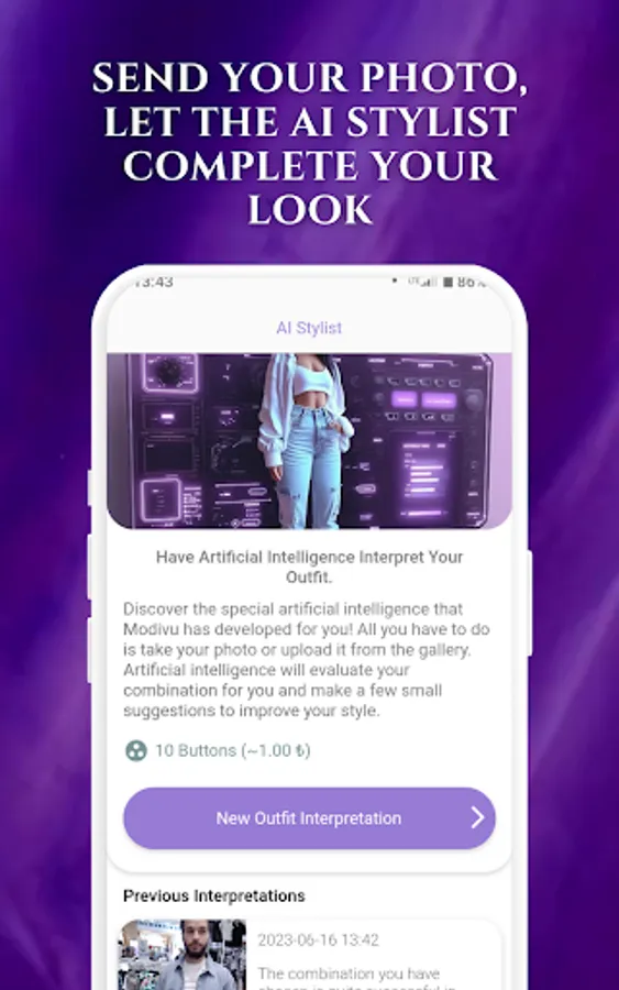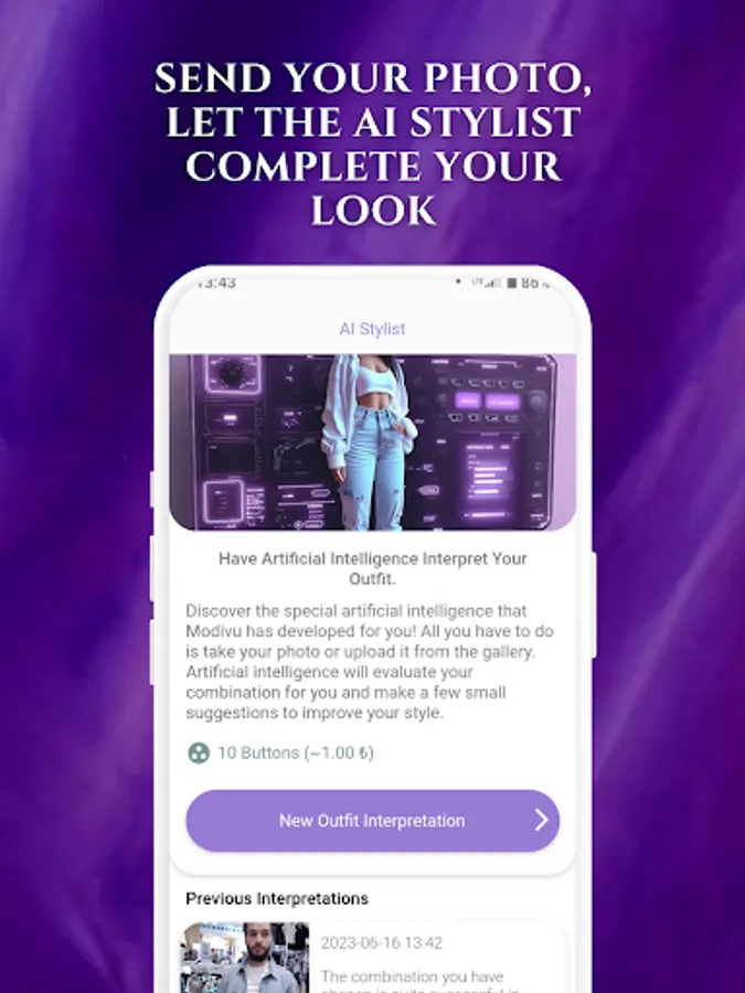 In the AI Stylist service, you send the photo of your outfit to Modivu, and Modivu's artificial intelligence evaluates the outfit, expresses his opinions and suggests what you should do.