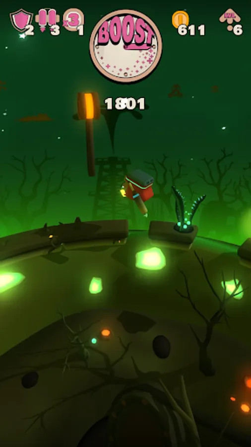 3D platform jumper / runner in cute world with danger obstacles.