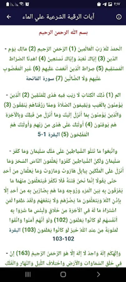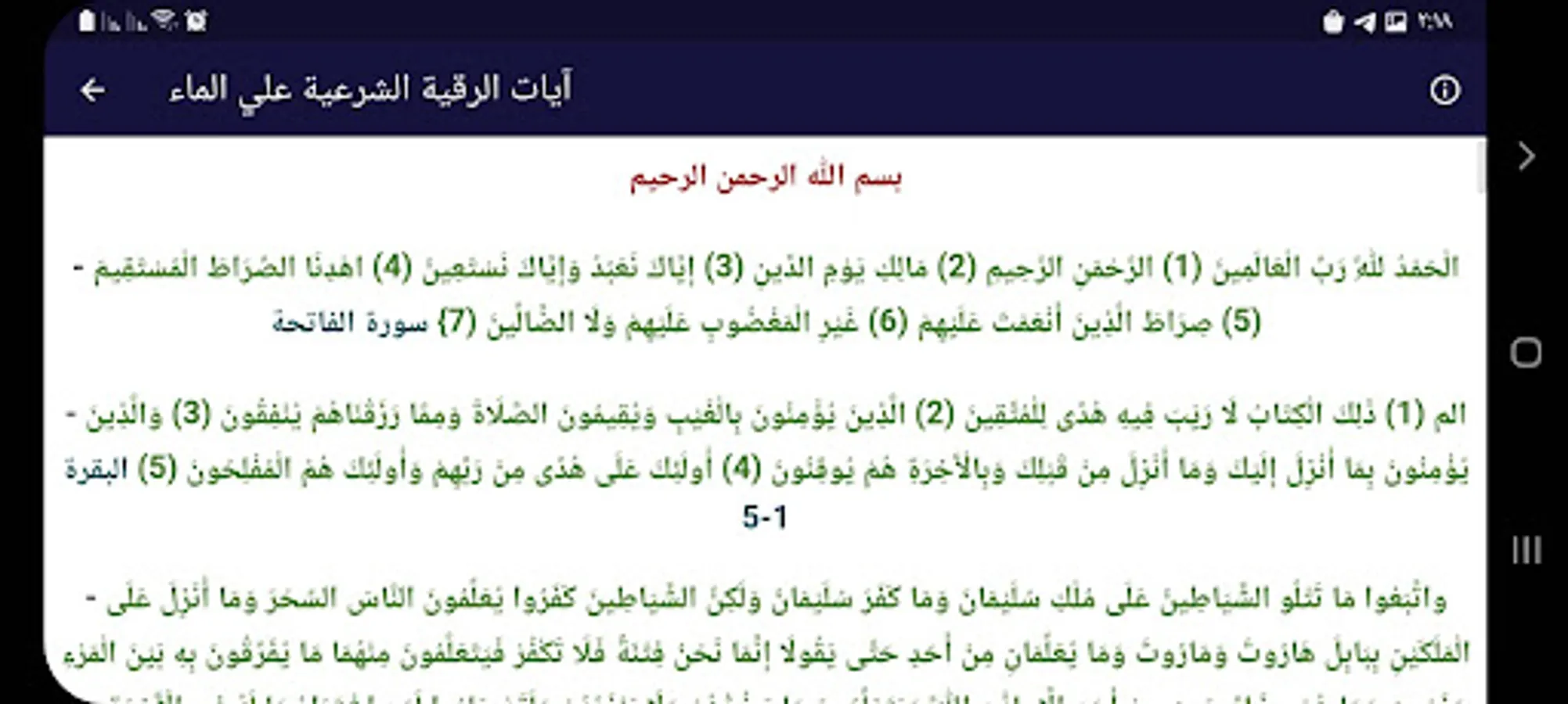The first section: The verses of the legal ruqyah written on the water