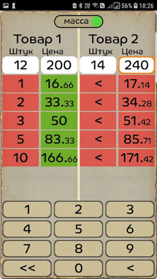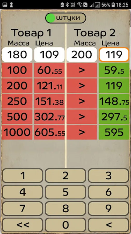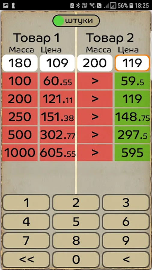 Price Comparator - calculates automatically and shows how much 1 liter, 1 kilogram, 1 unit costs.