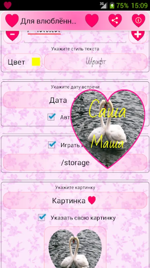 The basis of the application - a picture of a heart - symbol of love.