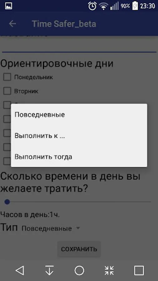 • Fix the time that you are willing to spend while working on each of the tasks per day. The ability to distribute all tasks between the days of the week and determine the type of task execution, for example, everyday tasks or those that need to be performed by a certain day.