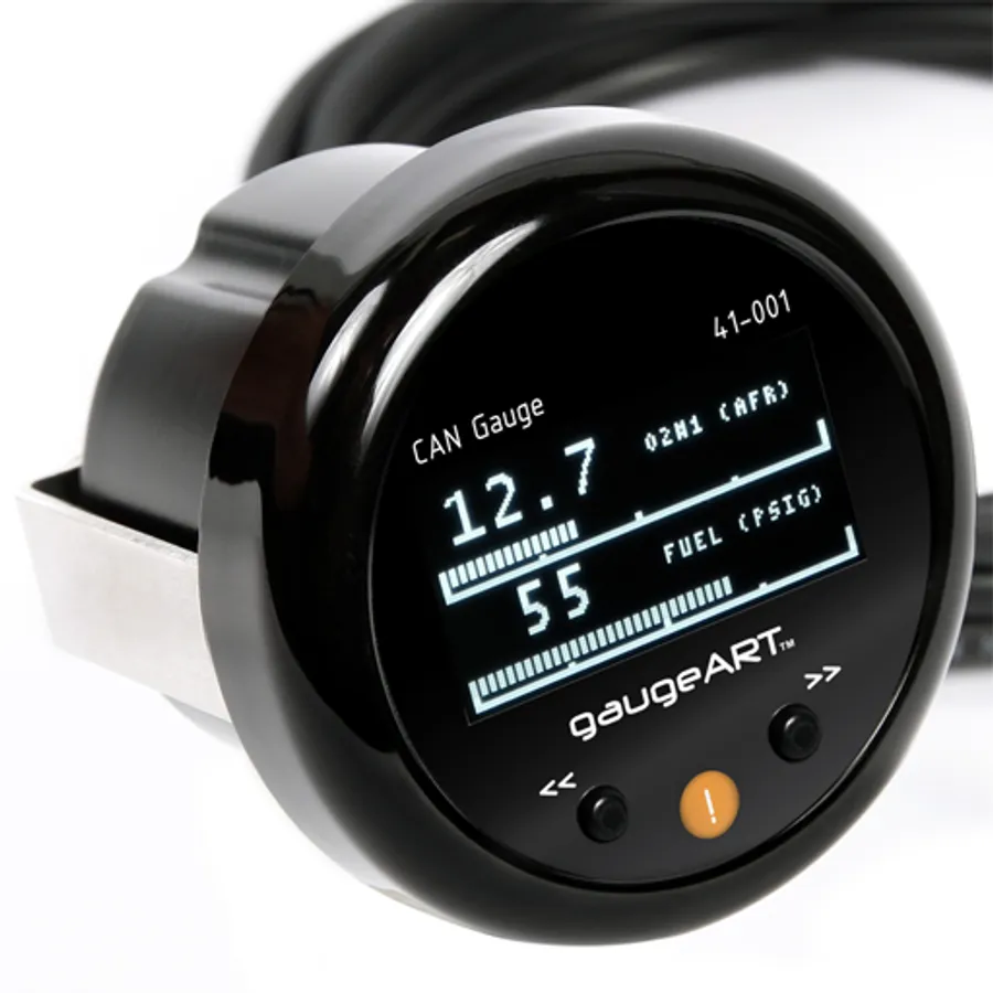 The gaugeART CAN Gauge is an innovative compact OLED gauge for displaying real-time data from your engine management system. Supported parameters such as boost pressure, air/fuel ratio, coolant temperature, fuel pressure, ethanol content, etc. can be displayed without additional sensors.