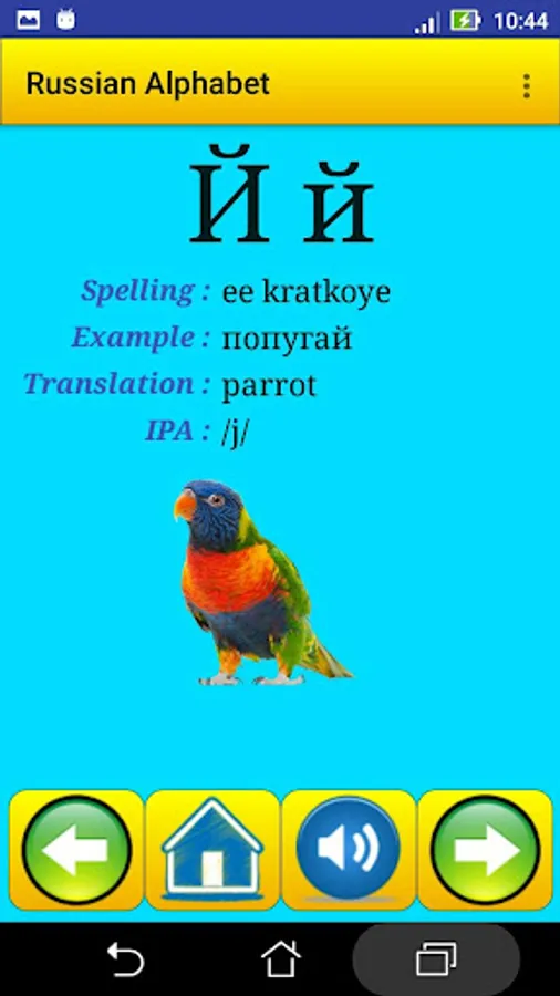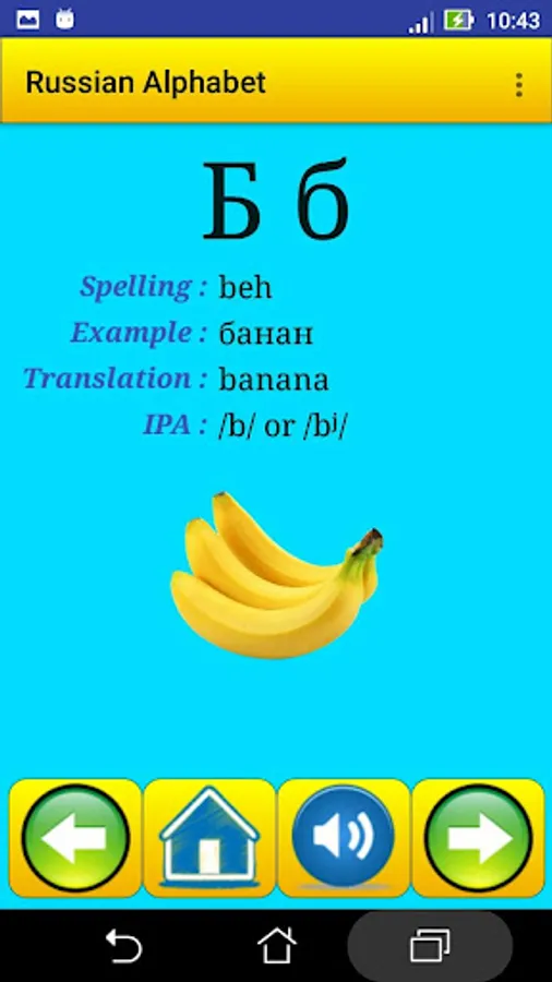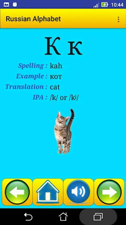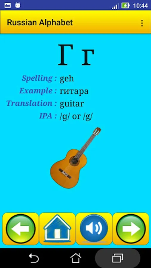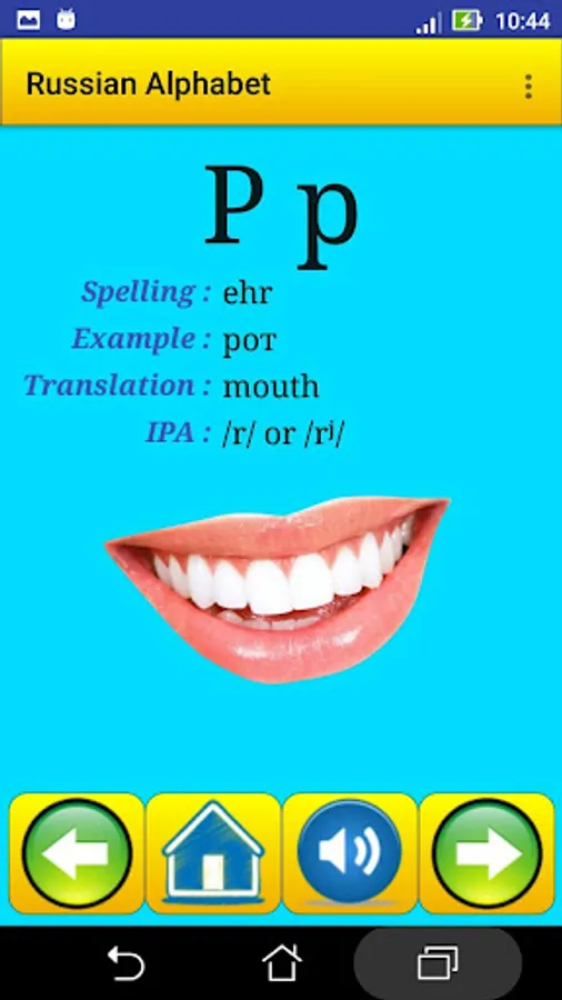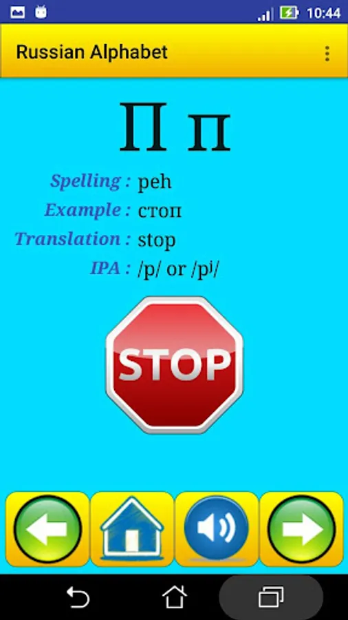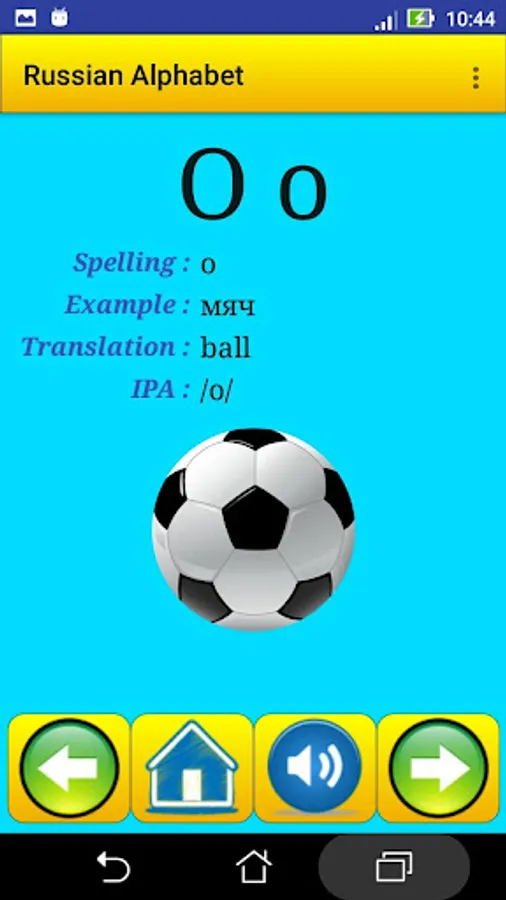 This app contain all Russian alphabet , exactly 33 letter , it help strangers students in Russian universities , for learning and speaking the alphabet and the pronunciation .