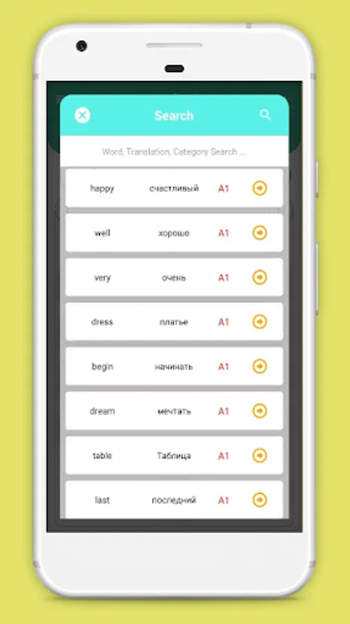 • With the 🔍 (Search) feature, you can easily find the word, translation, category you want to find.