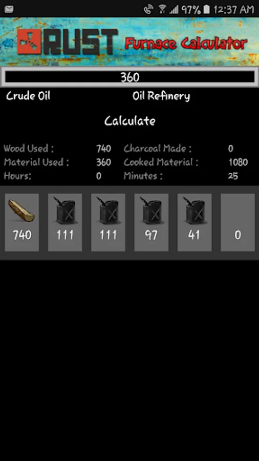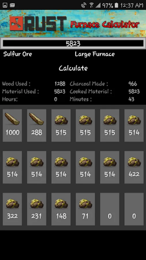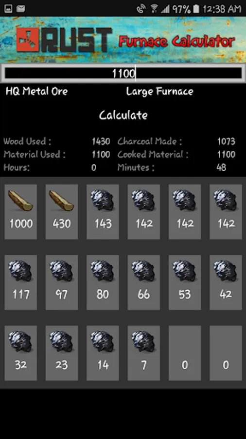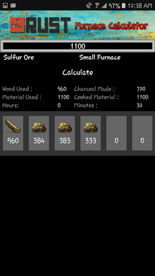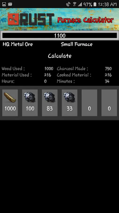 Just enter how much you have of something, select the right material and furnace size and hit calculate. Not much more to it.