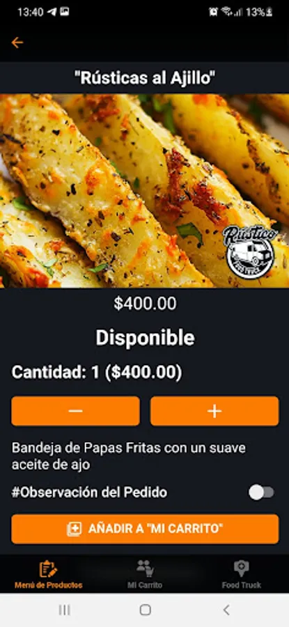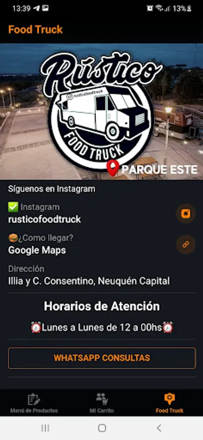 Rústico Food Truck was born in 2019 through the Effort of Years of Work on the part of Fabian Sierra, who dedicated a large part of his life to the Kitchen and currently has his own Food Truck where you can share a wonderful moment with your loved ones, friends, etc., delighting you with the Great view of the City that the East Park of the Capital City of Neuquén offers.