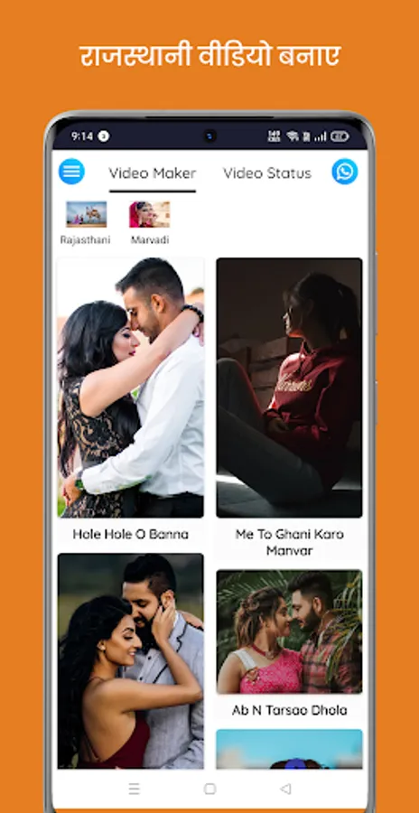 In our app, you will get superb content having great quality and short video duration, so you can basically download and set it as your status video that is fast to upload. There are many kinds of videos covering new Rajasthani songs, Marwari video status, Marwari jokes, Rajasthani chutkule.