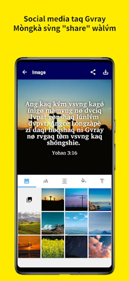 - Share a verse on social media sites and encourage your friends. Add a custom background image to enhance your presentation.