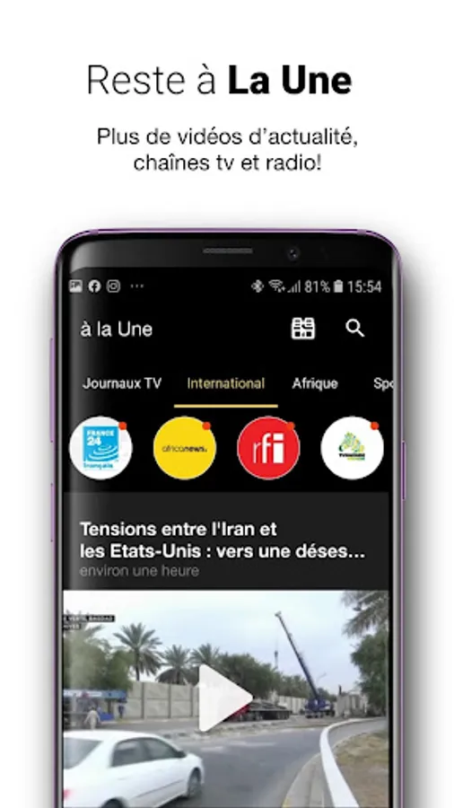 • Follow international channels live: France 24, RFI, TV5 MONDE, etc.