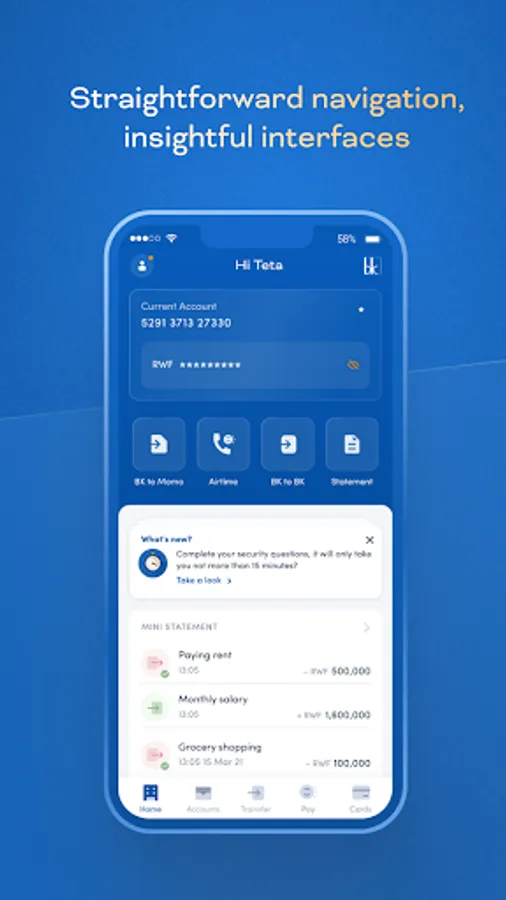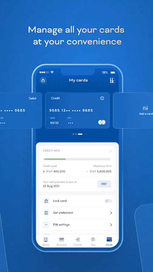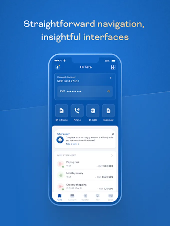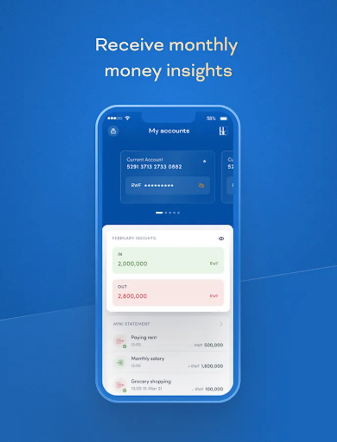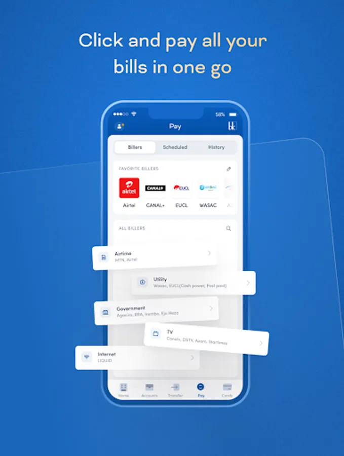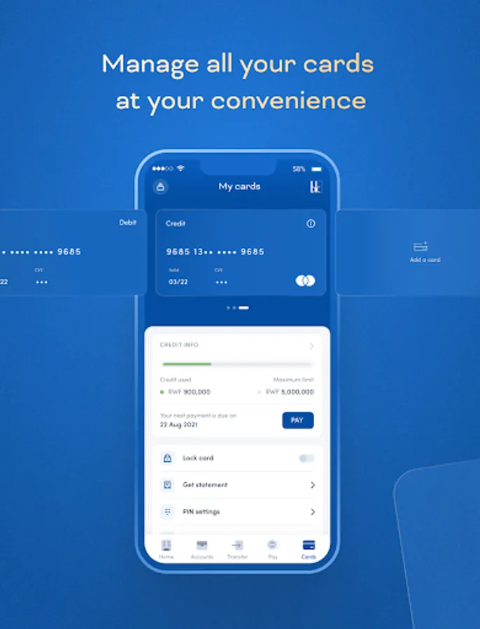 Stay on top of your finances by accessing your accounts instantly anywhere, anytime with Bank of Kigali Mobile Banking App.