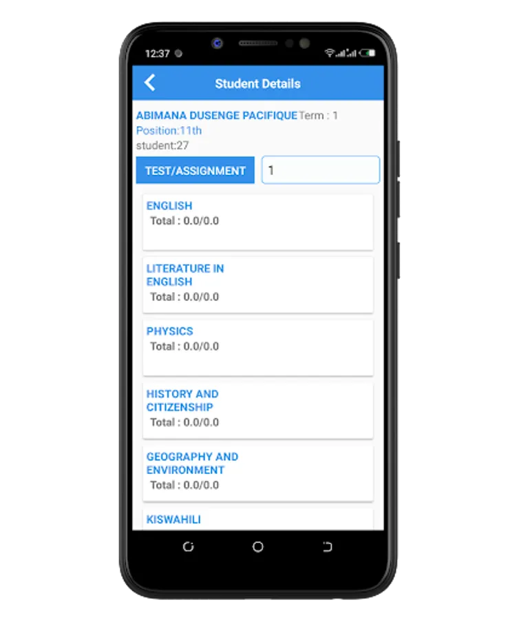 A smart phone application meant to help teachers and parents to generate their students report on real time at school.