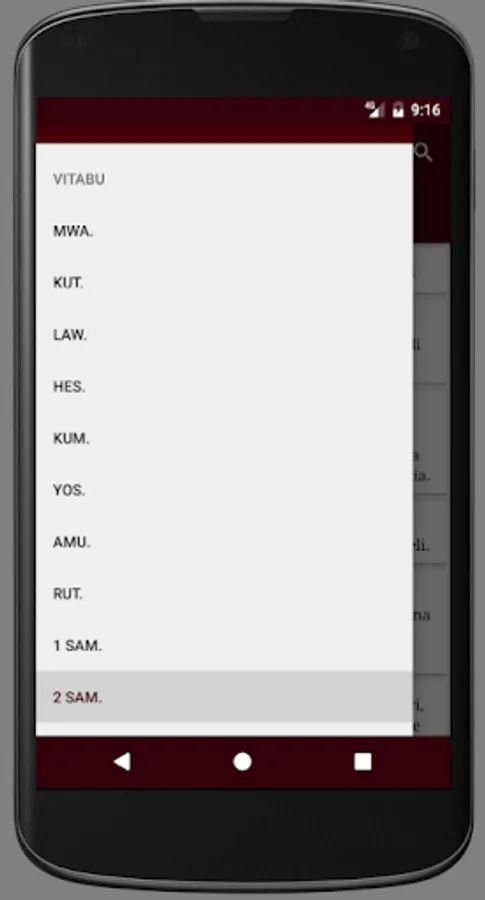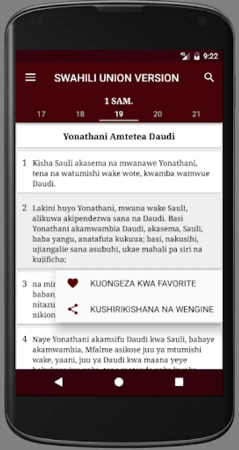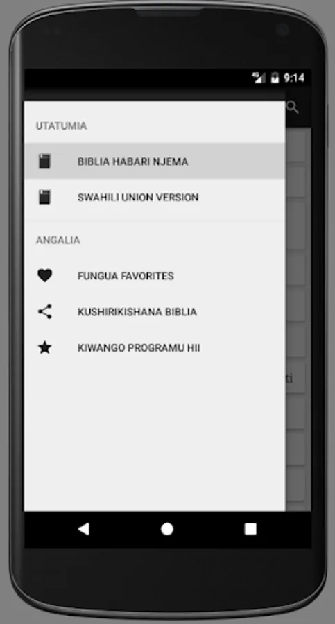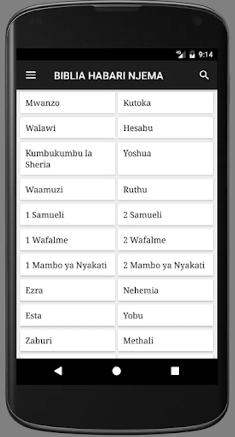 This program has two versions of the Holy Bible in Swahili that is Good News Bible and the King James Version. Default is the Good News Bible opens but you can choose to turn.