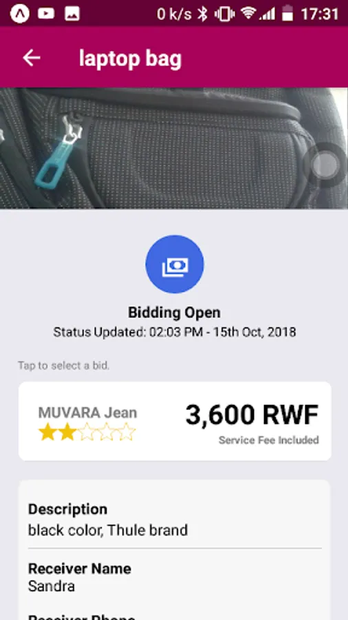 6. Transporter delivers the item to the receiver and confirm the delivery through Ohereza Application