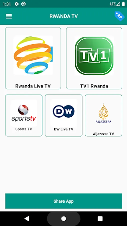 TV stations available to this app are TV ONE (TV1) and Rwanda TV.