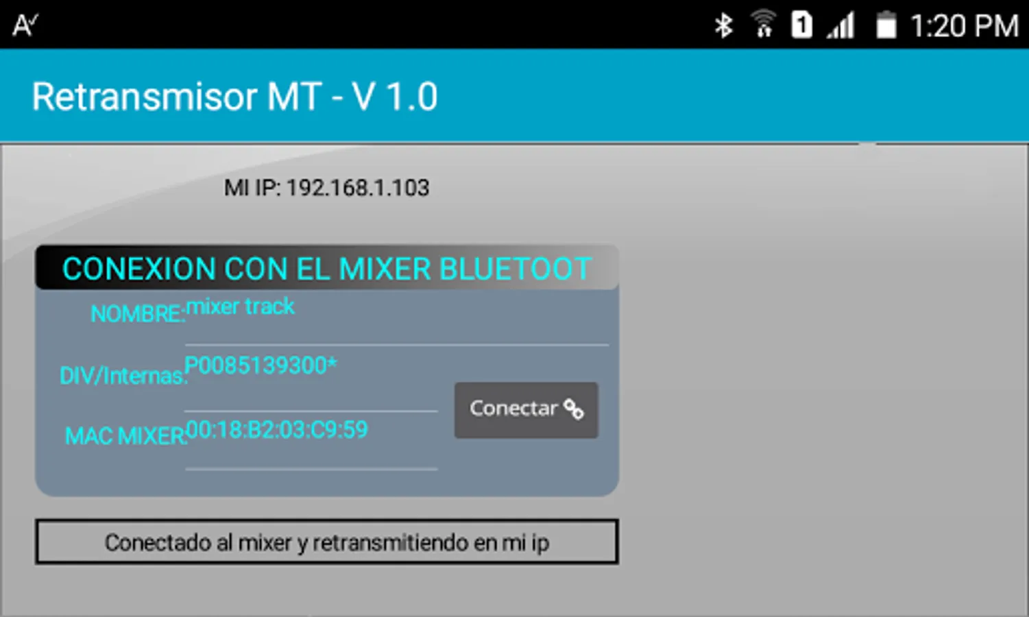 Retransmits internal divisions of the box via Bluetooth WI FI for Track Mixer